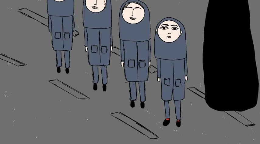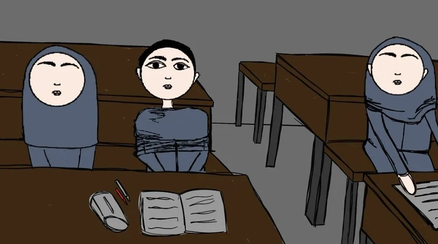 This animation is based on a personal memory from my final year in Iran. At fifteen, I shaved my head and removed my hijab in a school environment where female appearance is strictly regulated.